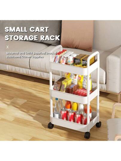 1pc Multifunctional Small Trolley Storage Rack With Wheels (Yy-02) For Household Kitchen, Bedroom, Bathroom Storagehome Kitchen Appliances Accessories Gadgets Tools Christmas Kitchen Stuff Cooking Christmas - White - View 1