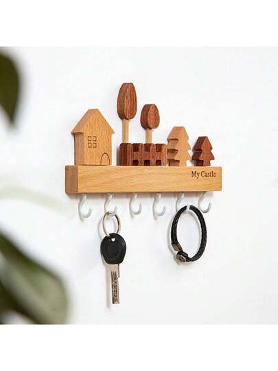 1pc Nordic Solid Wood Wall Key Hook Creative New Wall Mounted Porch Key Storage Rack Free Punch - Yellow - View 1