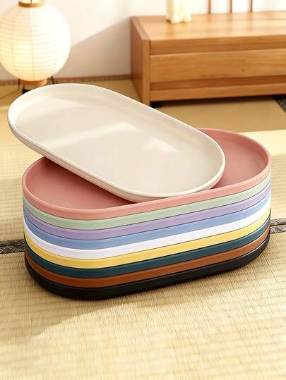 1pc Oval Plastic Tray, Suitable For Food, Colorful Serving Plate, Smooth Surface Easy To Clean, Dishwasher , Portable And Reusable, Great For Kitchen, Bathroom And Vanity