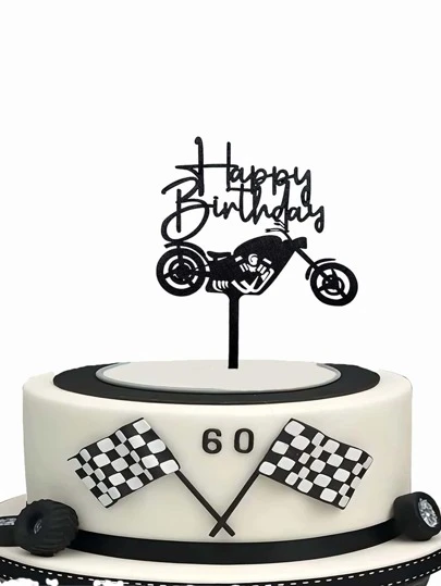 1pc PMMA Cake Top Decoration, Letter & Motorcycle Design Cake Topper For Birthday Party - Black - View 1