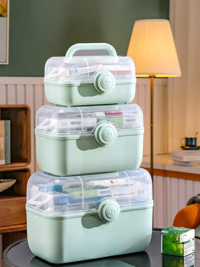 1pc PP Medicine Storage Box, Modernist Portable Medicine Lock Box For Home - Mint Green - View 1