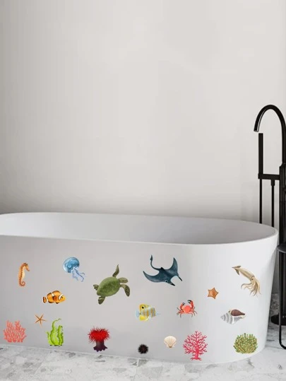 1pc PVC Bathtub Applique, Cartoon Marine Life Pattern Bathtub Sticker For Bathroom - Multicolor - View 1