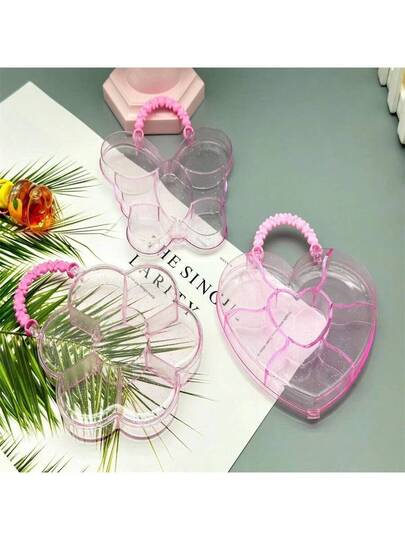 1pc Pink Translucent Handheld Storage Box, 7-Compartment Ps Plastic Jewelry Box, Diy Hair Tie Storage Box
