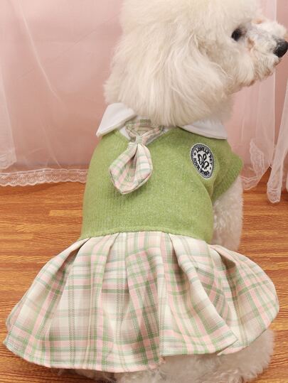 Polyester Pet Cat And Dog Outfit JK Dress Comfortable And Cute Cat Sweater Dress Suitable For Small Dogs And Cats Year-Round (Not Suitable For Large Dogs) - Green - View 1