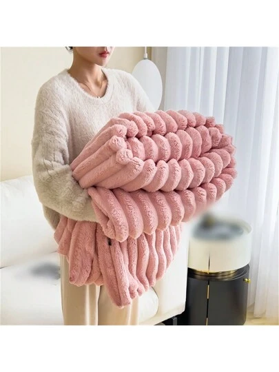 1pc Plain Color Thickened Flannel Fleece Blanket - Pink - View 1