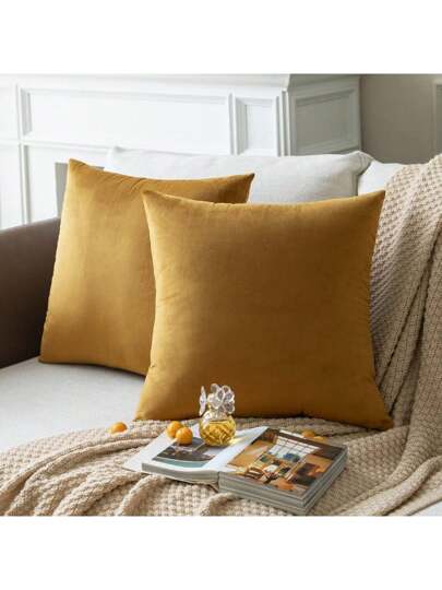 1pc Plain Cushion Cover Without Filler, Striped Velvet Square Pillowcase For Sofa, Home Decor - Champagne - View 2