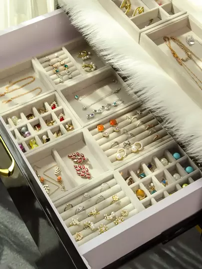 1pc Reusable MDF Jewelry Tray,Exquisite Solid Durable Jewelry Storage Box For Placing Ring,Necklace - Beige - View 1