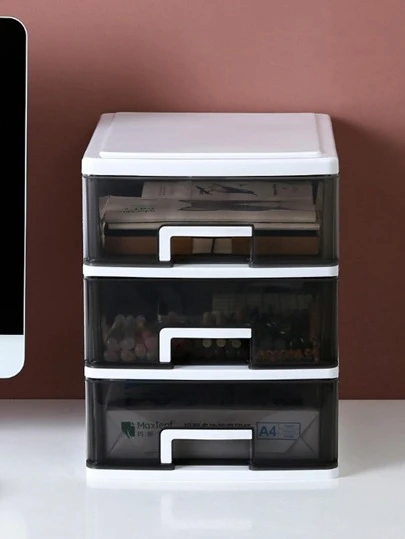 1pc Plain Stationery Storage Box - Black and White - View 4
