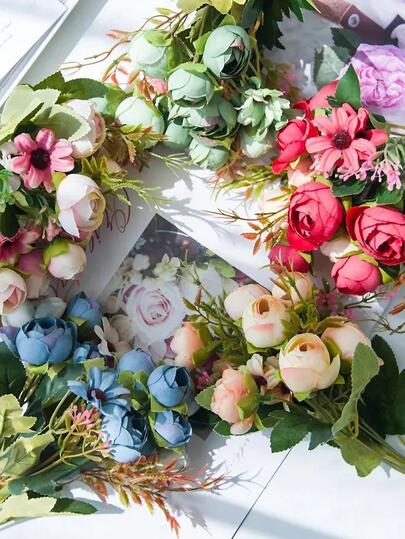 Stonego Silk Rose Artificial Flower Bouquet, Plastic Flowers Fake Daisy, Used For Home Living Room Wedding Table Decoration - Pink - View 1