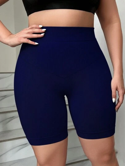 1pc Plus Size Seamless High Waist Shapewear Shorts - Navy Blue - View 1