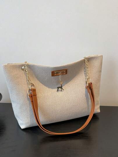 1pc Polyester Deer Pattern Decorative Large Capacity Zipper Shoulder Tote Bag, Suitable For Women's Daily Use - Multicolor - View 1