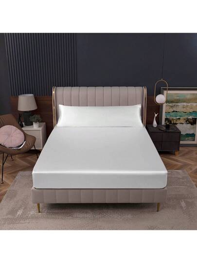 1pc Polyester Spandex Elastic Fitted Sheet - White - View 1
