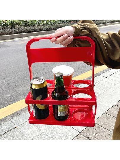 1pc Portable Foldable Drink Holder, Red Plastic Handheld Party Beverage Rack, For Outdoor - Red - View 7