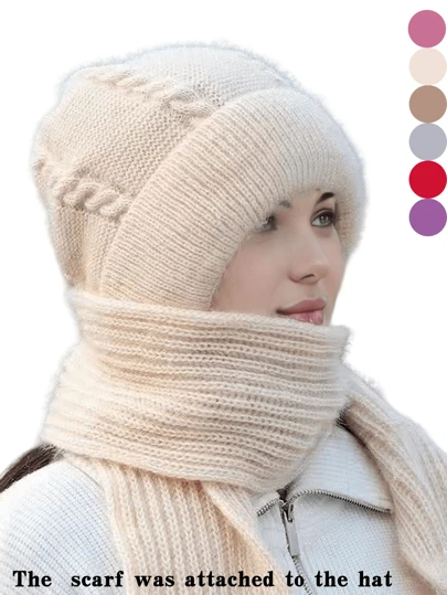 1pc Premium Women's Solid Color Thick Knitted Multi-Functional Scarf Hat, Windproof And Warm, Ear And Neck Protection, Suitable For Women's Daily Outings And Outdoor Activities In Cold Weather Winter Fall Valentines Gift - Multicolor - View 1