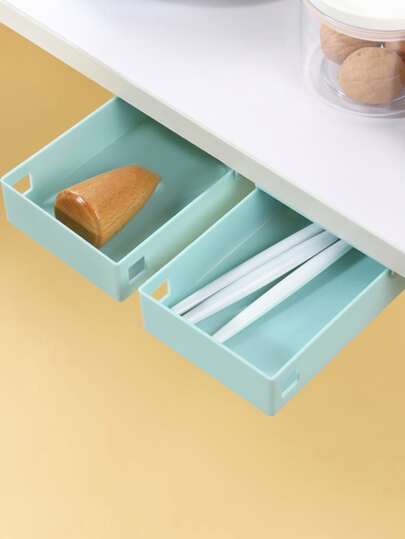1pc Self-Adhesive Under Desk Drawer - Blue - View 1