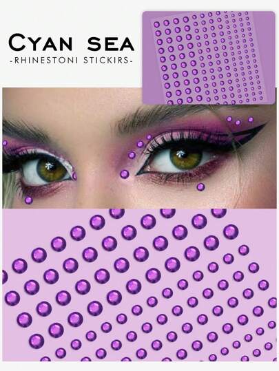 1pc Purple Diamond Shaped Glitter Face Tattoo Sticker - Purple - View 1