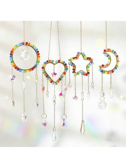 1pc Rainbow Star Moon Window Garden Decor Crystal Sun Catcher Hanging Ornament - Multicolor - View 1