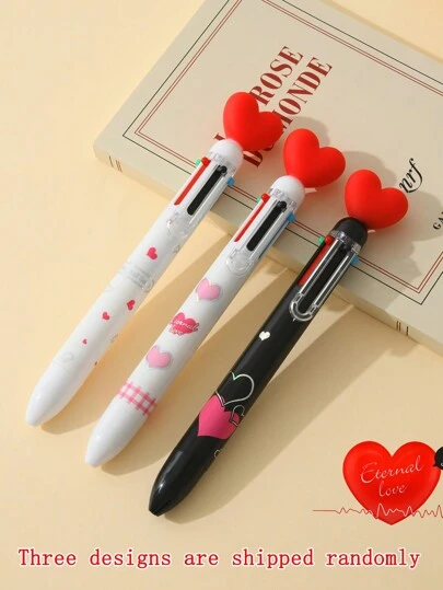 1pc Random Heart-Shaped Ballpoint Pen With Six Colors Back To School - Multicolor - View 1
