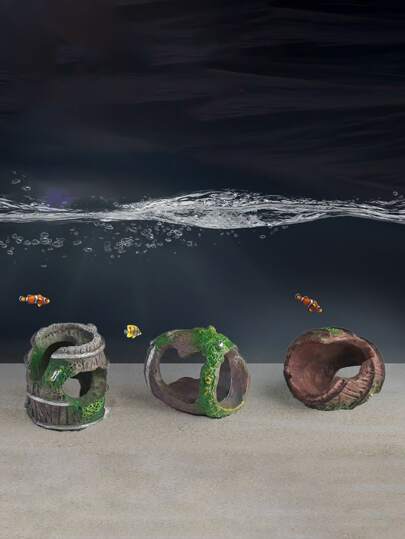 1pc Random Style Miniature Resin Imitation Distressed Barrel Fish Shrimp Hideout House Cave Ornament Decoration For Aquarium Fish Tank - Multicolor - View 1