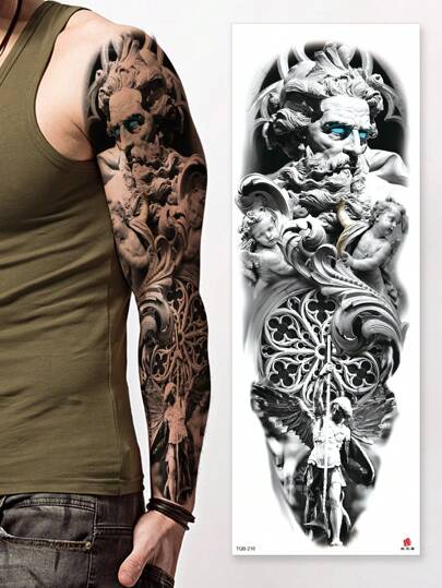 1pc Realistic Waterproof Arm Tattoo Sticker, Fierce Wild Animals Tiger, Wolf, Full Arm Large Temporary Tattoo Sleeve - Black - View 1
