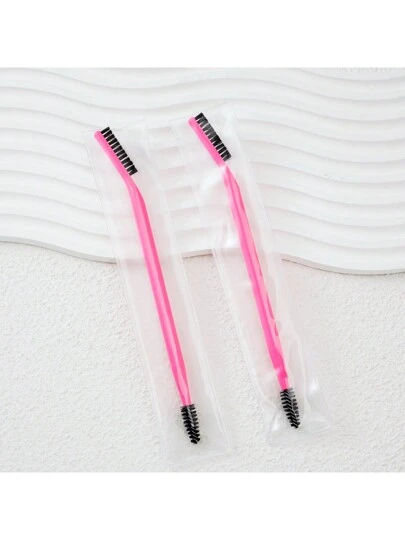 1pc Refresh Makeup Brush For Beginners Portable Double-Ended Eyebrow Brush & Spiral Eyelash Brush, For Clear Definition & Precise Trim, Eyebrow Brush, Eyeshadow Brush, Brush - Hot Pink - View 2
