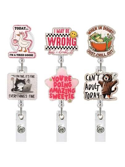 1pc Retractable Rotating ID Badge Holder Clip With Goose, Black Cat, Frog Designs, Suitable For Doctors, Nurses - Multicolor - View 6