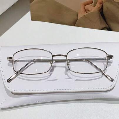 1pc Retro Small Frame Y2K Silver Frame Glasses, Unisex Metal Full Frame Decorative Glasses - Silver - View 1