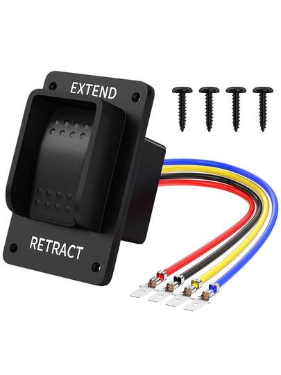 1pc Reverse Polarity Switch 12V Waterproof Momentary 3 Position (ON)-Off-(ON) Rocker Switch Marine RV Power Stabilizer Jack Switch 20A DPDT With Pre-Wired For Boat Auto UTV Travel Trailer - Black - View 8