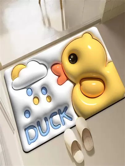 1pc Rubber Bath Rug, Cute Duck & Rabbit Detail Toilet Mat For Bathroom - Multicolor - View 1