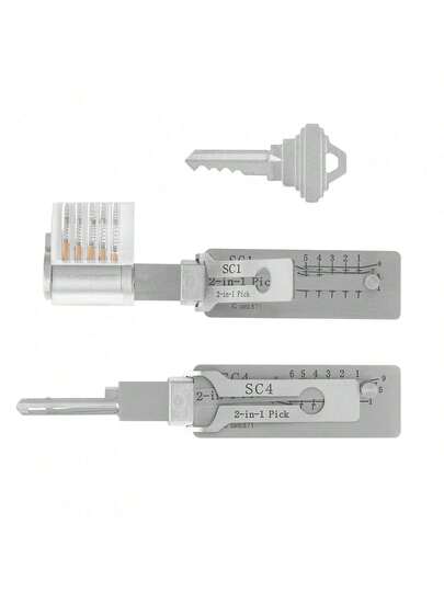 1pc SC1 + 1pc SC4 + Lock Tools, Professional Lock Picking Tools, Lock Opening Tools, Professional Locksmith Tools, Beginner Training Tools - Silver - View 1