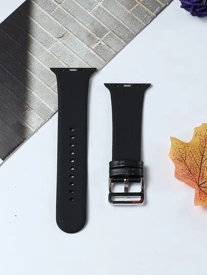 1pc Silicone Watchband Compatible With Apple Watch - Black - View 1