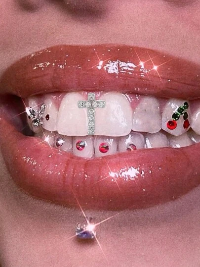 1pc Silver-colored Cross-shaped Dental Braces - Silver - View 1