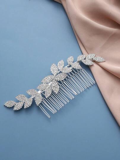 1pc Minimalist Bridal Hair Comb, Wavy Crystal Alloy Leaf Design Multi-Tooth Hair Accessory For Wedding, Party, Valentine's Day, Prom, Bridal Gown Decor - Silver - View 1