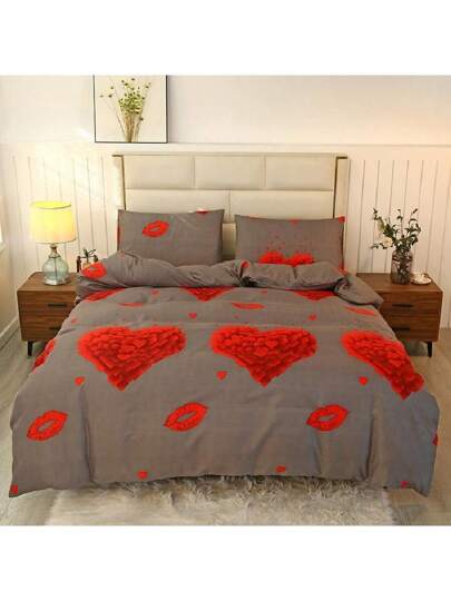1pc Simple Comfortable Printed Comforter Cover Bedding Set Without Bed Sheet, Pillowcases, Or Filling - Hickey Love Heart - View 1