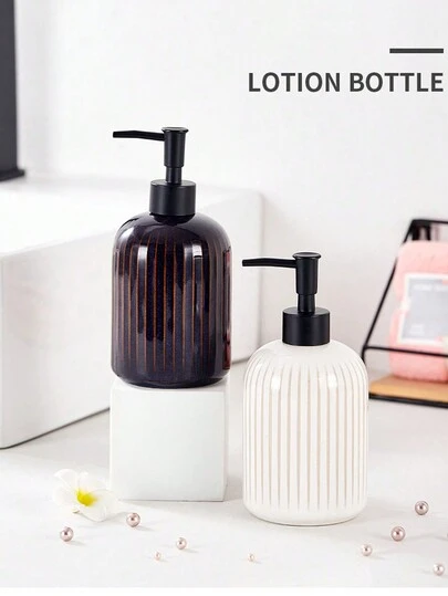 1pc Simple Luxury Style Ceramic Dispenser With Press Pump For Soap Or Lotion Refill, Suitable For Hotel, Home & Bathroom - Black - View 1