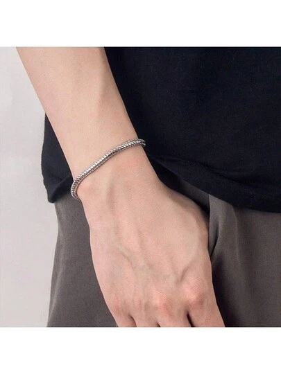 1pc Simple Versatile Round Snake Bone Chain Bracelet Stainless Steel For Men's Style Daily Decoration - Silver - View 1