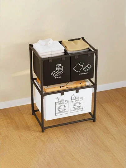 1pc Single/Double Layer Dirty Clothes Basket Organizer, Bathroom Storage Organization Rack - Multicolor - View 1