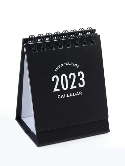 1pc Slogan Graphic 2023 Desk Calendar - Black - View 1