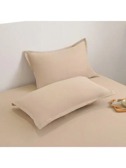 1pc Solid Color Brushed Pillowcase, Bedroom Bedding, Luxury , Classic, Machine Washable, Skin-friendly & Breathable, Soft & Comfortable - Khaki - View 1
