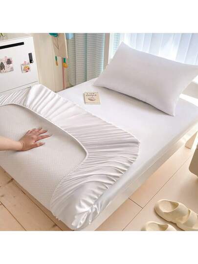 1pc Solid Color Fitted Sheet, Mattress Protector, Soft & Breathable, Fits Various Bed Sizes - Twin, Full, Queen, King. Deep Pocket Design Up To 11.8 Inches, Home Textile, Wrinkle-Resistant, Promotes Better Sleep, Machine Washable. - White - View 1