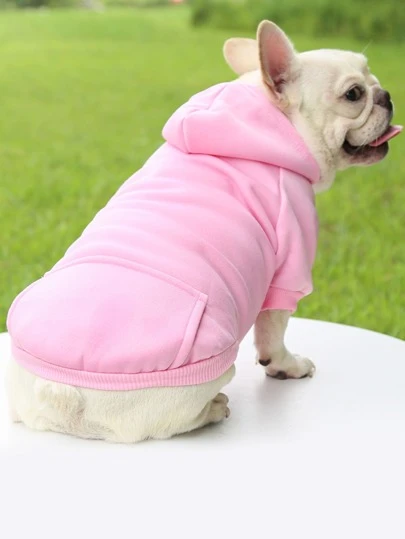 1pc Solid Color Pet Hoodie With Pocket - Pink - View 1