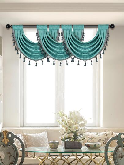 1pc Solid Color Snowy Net Curtain With Tassel Edge, Suitable For Living Room, Bedroom, Kitchen Window And Door Decoration - Green - View 1
