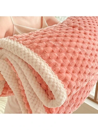 1pc Solid Colored Thickened And Soft Blanket - Pink - View 11