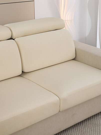 1pc Solid Stretchy Sofa Seat Cover - Beige - View 1