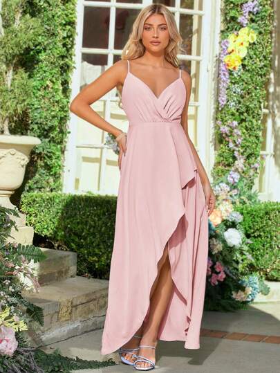 SHEIN Belle 1pc Solid Wrap Hem Cami Bridesmaid Dress - Baby Pink - View 1