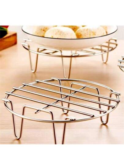 1pc Stainless Steel Circular Cooking Rack - Perfect For Air Fryers, Soup Pans, Cake Plates & Ovens! - Silver - View 1