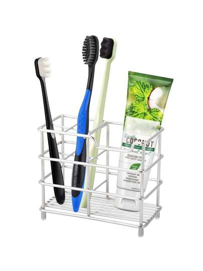 1pc Stainless Steel Iron Art Bathroom Toothbrush Holder, Toothpaste Rack, Bathroom Accessories, Silver, Small Bathroom Decor Summer - Silver - View 1