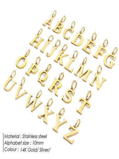 1pc Stainless Steel Letter Pendant, Unisex Keychain Pendant Accessory For Necklace, Earrings - Yellow Gold - View 1