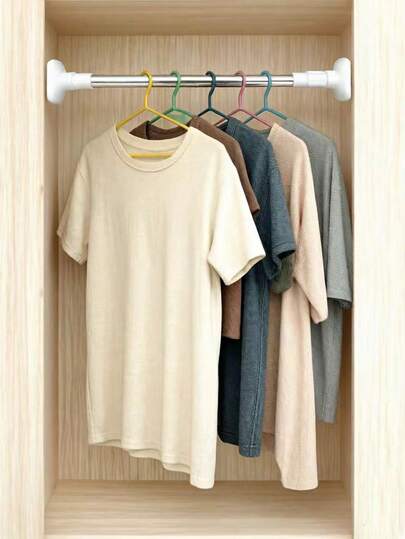 1pc Stainless Steel Retractable Drying Rack, Balcony Support Rod, Curtain Rod, Shower Curtain Rod, Wardrobe Hanging Rod, No Drill Telescopic RodChristmas Decor - Multicolor - View 1