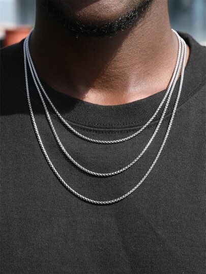 1pc Stainless Steel Square Pearl Chain Necklace Of Simple Style, Suitable For Men's Daily Wear - Silver - View 1